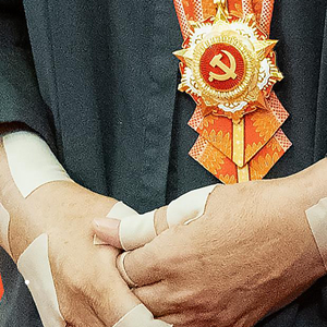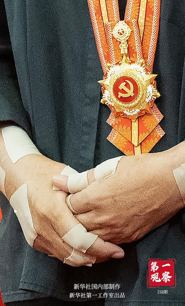 一雙貼滿膏藥的普通勞動者的手,捧起代表黨內最高榮譽的“七一勛章”。