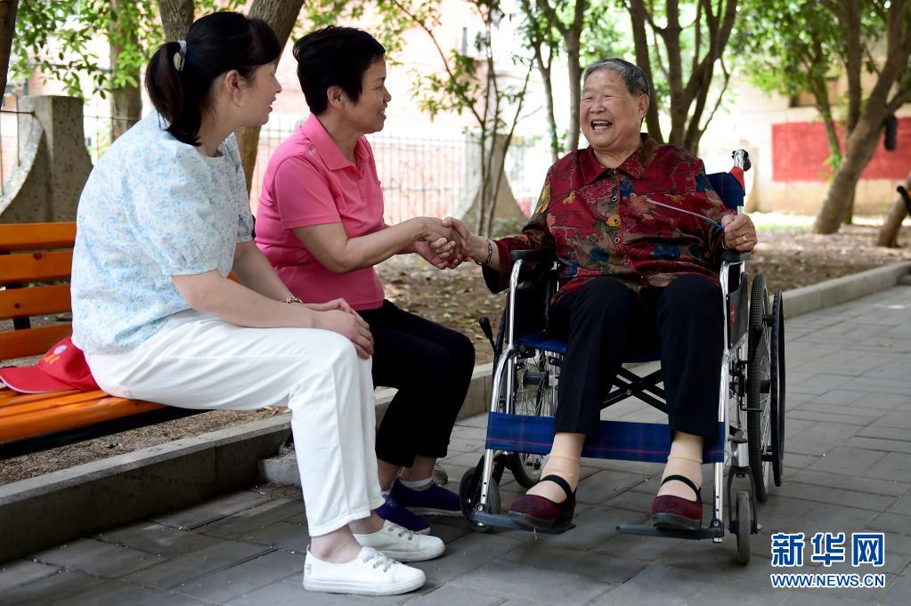 6月9日,在安徽省合肥市蜀山區(qū)西園街道,馬毛姐(右一)和社區(qū)居民交談。新華社記者 黃博涵 攝