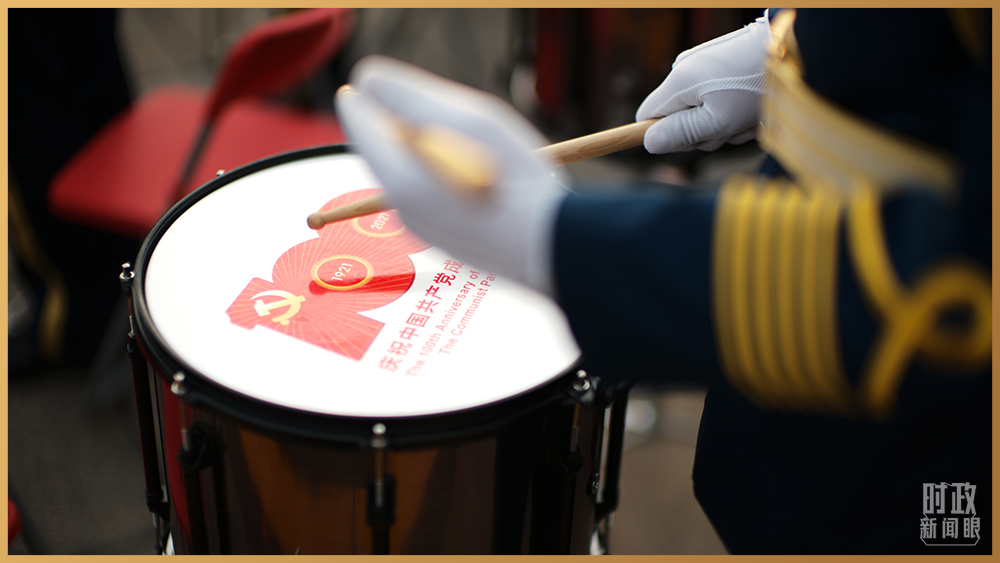 鼓面上帶有建黨百年慶祝活動(dòng)標(biāo)識(shí)(總臺(tái)央視記者彭漢明拍攝)