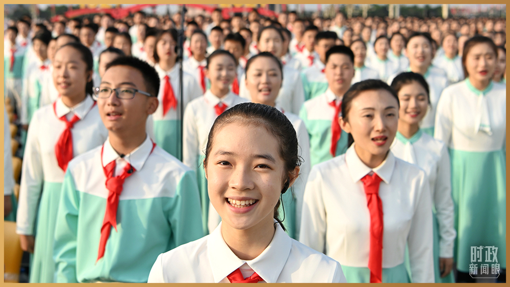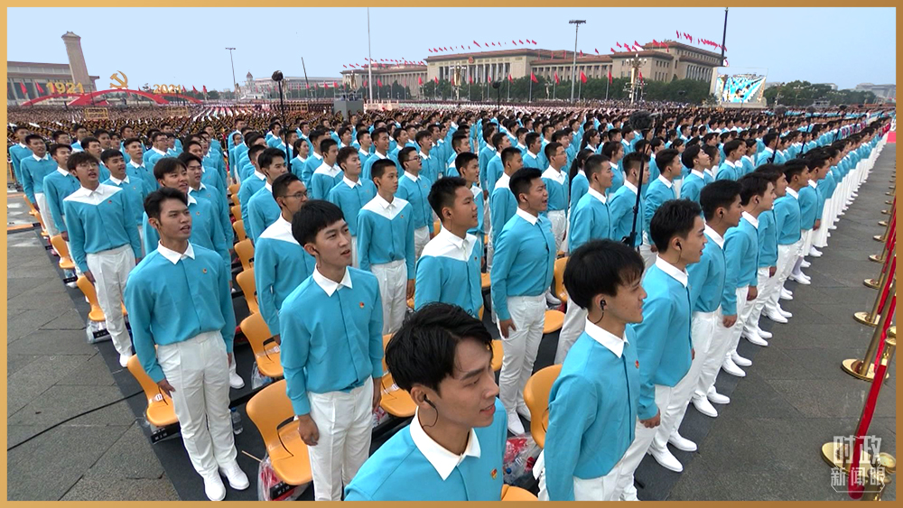 慶祝大會(huì)現(xiàn)場(chǎng)的共青團(tuán)員和少先隊(duì)員代表(總臺(tái)記者孫楠拍攝)