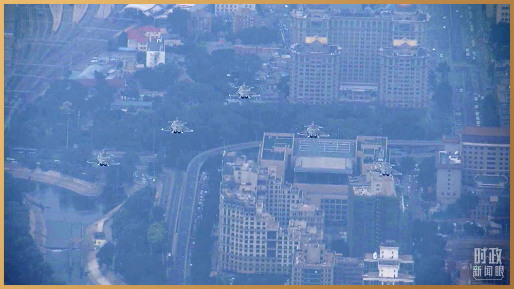 15架殲-20飛機(jī)組成3個(gè)梯隊(duì),飛過(guò)天安門廣場(chǎng)。