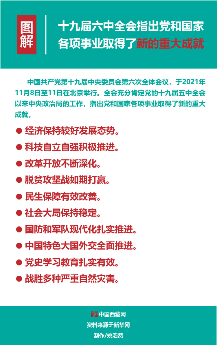 十九屆六中全會指出黨和國家各項事業(yè)取得了新的重大成就