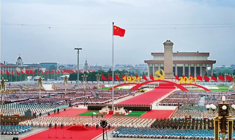 2021年7月1日上午,慶祝中國(guó)共產(chǎn)黨成立100周年大會(huì)在北京天安門廣場(chǎng)隆重舉行。習(xí)近平總書(shū)記在大會(huì)上莊嚴(yán)宣告,我們實(shí)現(xiàn)了全面建成小康社會(huì)的第一個(gè)百年奮斗目標(biāo)。圖為慶祝大會(huì)現(xiàn)場(chǎng)?!±铘?攝