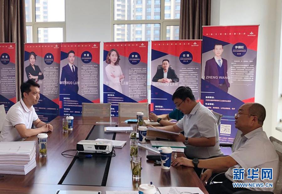 全國人大代表才華(右一)在天津一家律師事務所調研(資料照片)。新華社發(fā)