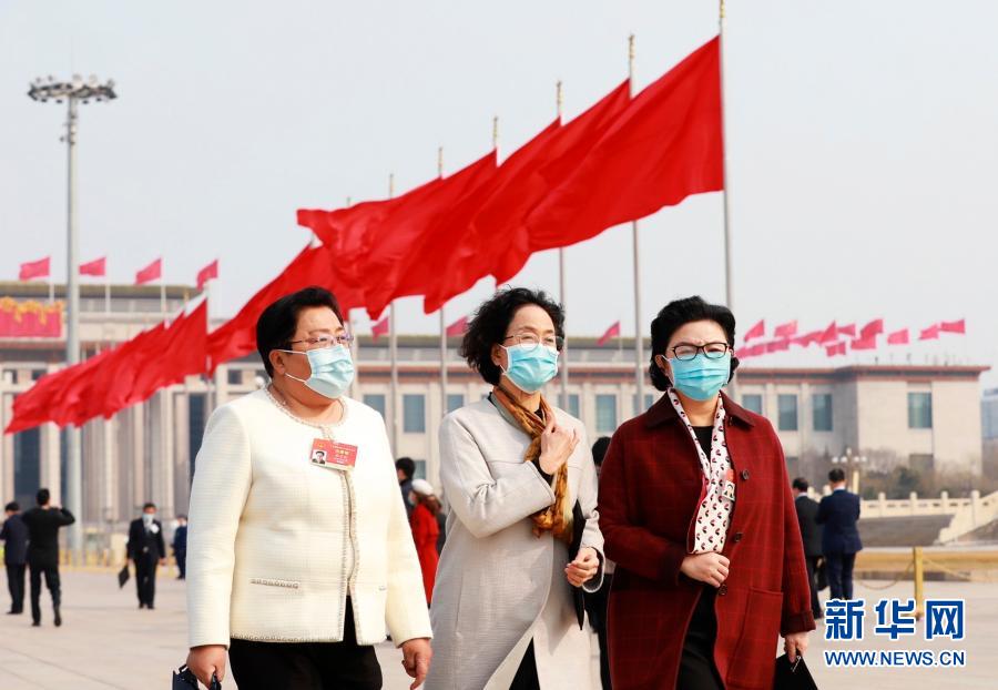 3月8日,十三屆全國人大四次會議在北京人民大會堂舉行第二次全體會議。這是女代表們走向會場。新華社記者 賀長山 攝