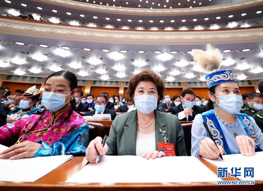 3月8日,十三屆全國人大四次會議在北京人民大會堂舉行第二次全體會議。這是幾位女代表在認真聽會。新華社記者 丁林 攝
