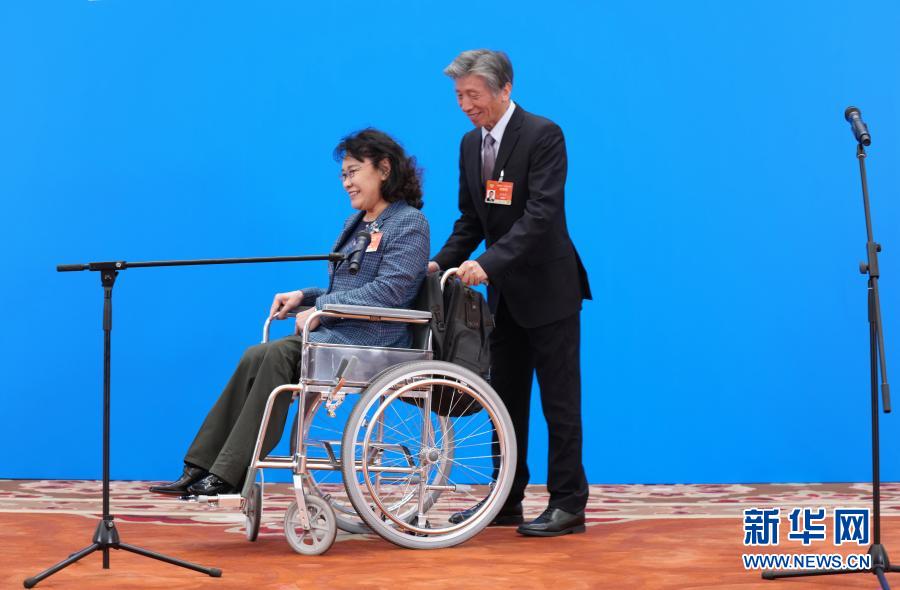 3月4日,全國政協(xié)十三屆四次會(huì)議第一場“委員通道”采訪活動(dòng)在北京人民大會(huì)堂新聞發(fā)布廳舉行。這是采訪活動(dòng)結(jié)束后,全國政協(xié)委員范迪安推著全國政協(xié)委員張海迪離開會(huì)場。新華社記者 李賀 攝