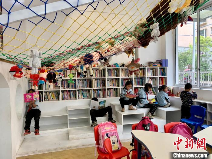 圖為當(dāng)?shù)貎和谌龑殐和瘓D書館開館當(dāng)日看書學(xué)習(xí)?!埗?攝