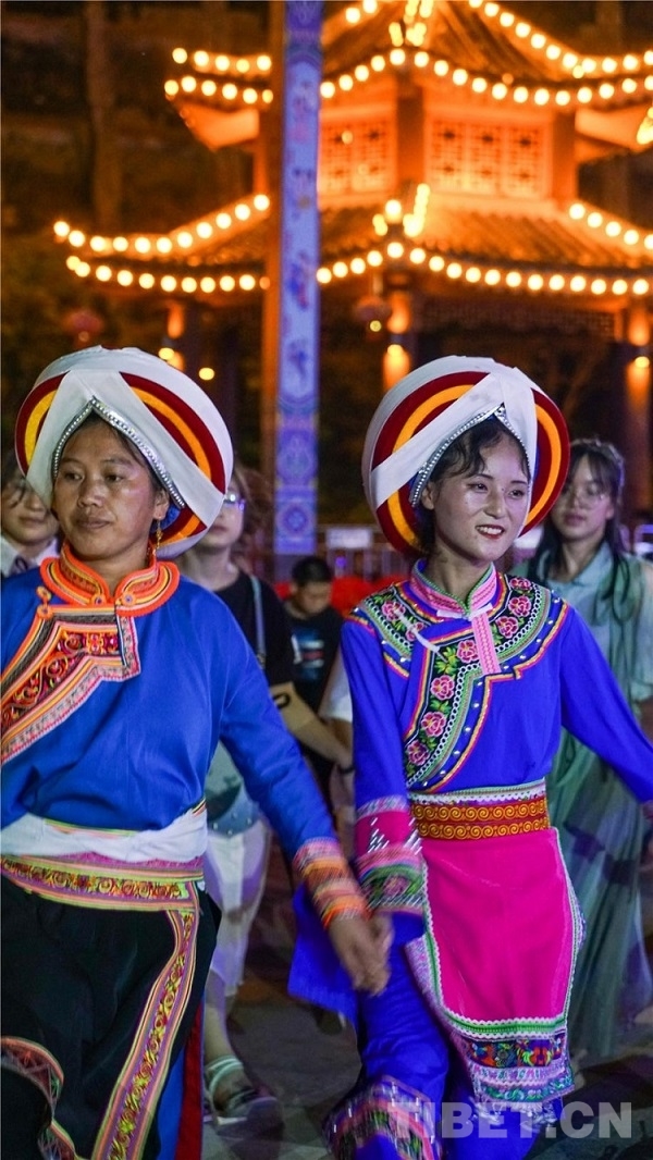 中國(guó)西藏網(wǎng)訊 當(dāng)陣陣涼風(fēng)襲來(lái),暑氣漸消,暮靄沉沉。碧水青山環(huán)抱的阿妹戚托小鎮(zhèn)卻漸漸躁動(dòng)起來(lái),熱騰的火苗將夏夜“點(diǎn)燃”,人們環(huán)繞火把載歌載舞、歡唱高歌,沉醉其中、樂(lè)而忘返。