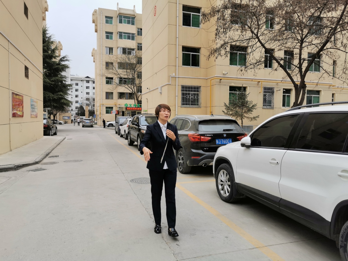 向陽片區(qū)小區(qū)黨總支書記韓慧帶領(lǐng)記者參觀向陽片區(qū)。孫若男 攝
