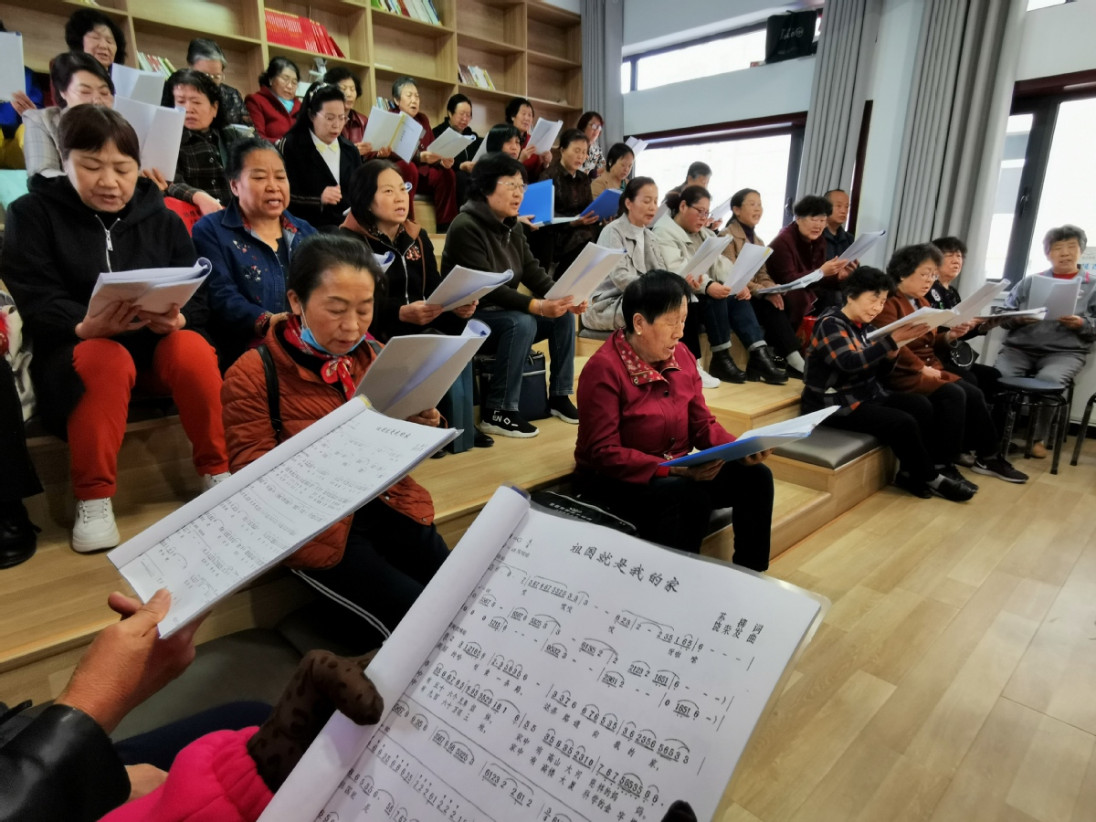 社區(qū)合唱團(tuán)在排練演唱《祖國就是我的家》。孫若男 攝