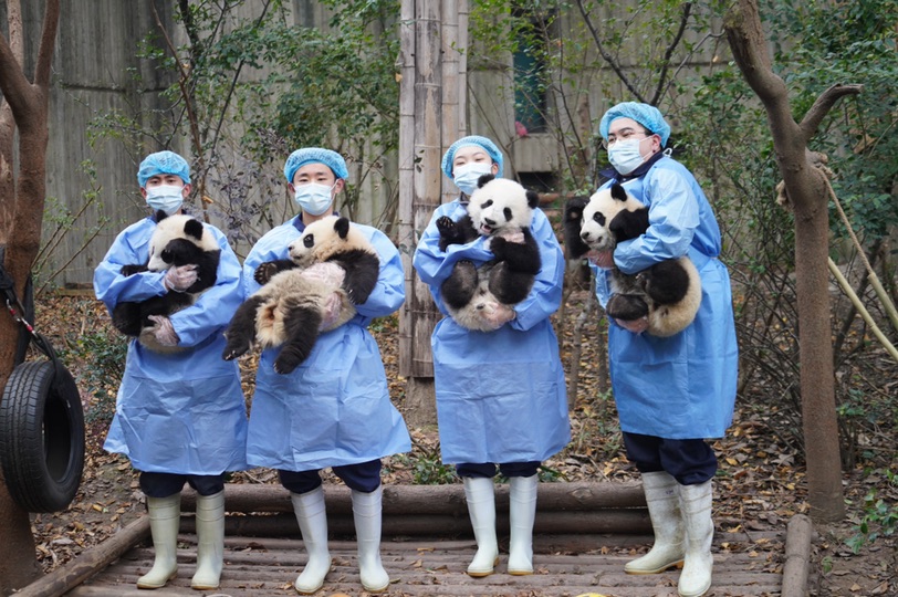 成都大熊貓繁育研究基地2021級熊貓寶寶通過網(wǎng)絡(luò)“云亮相”的方式,慶祝北京冬奧會(huì)圓滿舉行。 (成都大熊貓繁育研究基地供圖)