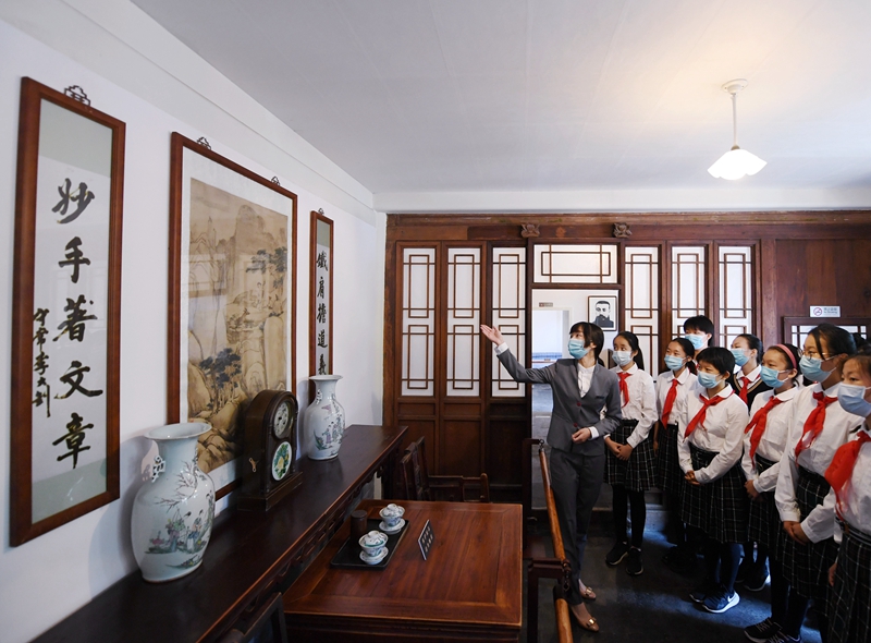 “南陳北李,相約建黨”,偉大建黨活動(dòng)是偉大建黨精神形成的實(shí)踐基礎(chǔ)。近期,中國(guó)共產(chǎn)黨早期北京革命活動(dòng)舊址正式面向社會(huì)公眾對(duì)外開放。本次集中開放的革命活動(dòng)舊址包括北京李大釗故居、《新青年》編輯部舊址等。圖為講解員為前來(lái)參觀李大釗故居的學(xué)生做介紹。新華社記者 張晨霖/攝
