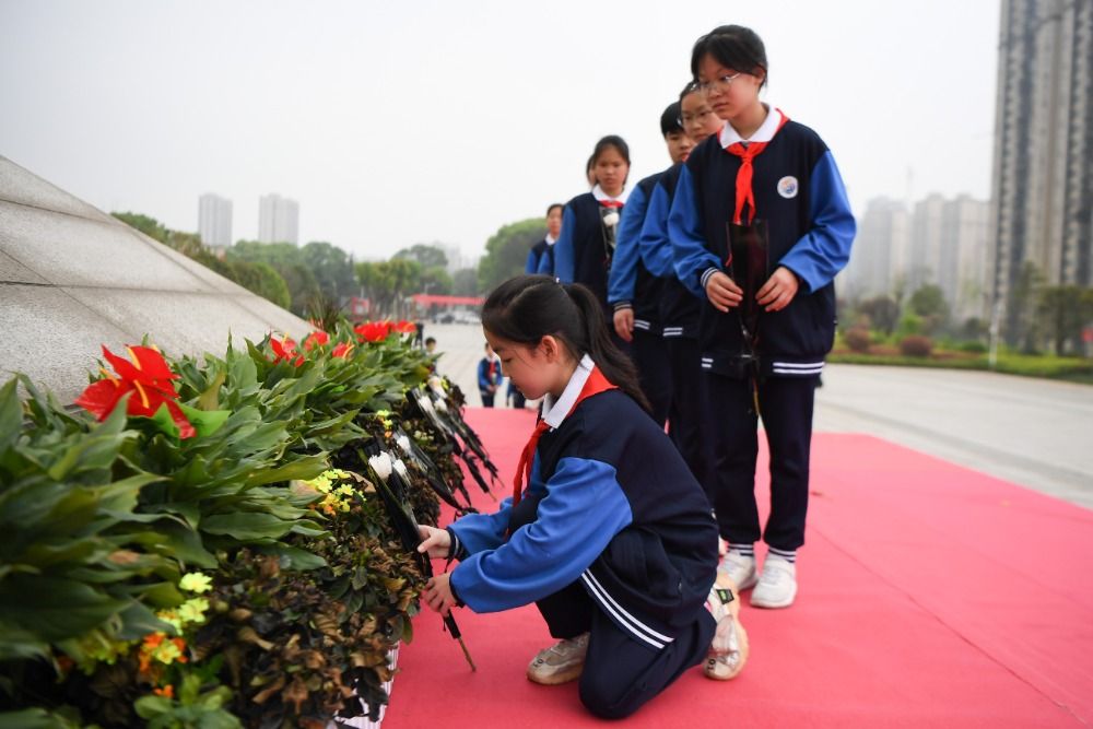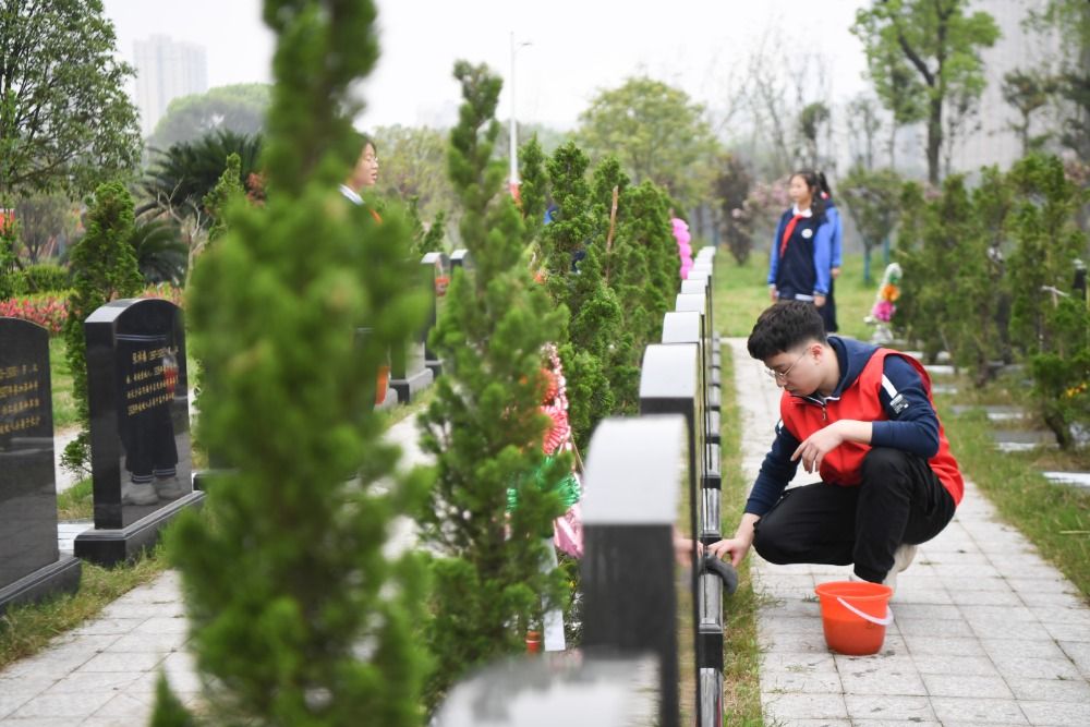 當(dāng)日,在湖南省長(zhǎng)沙市,共青團(tuán)長(zhǎng)沙市天心區(qū)委員會(huì)、天心區(qū)青年志愿者協(xié)會(huì)組織學(xué)生、志愿者來到湖南革命陵園祭掃烈士墓,表達(dá)對(duì)烈士的深切緬懷之情。