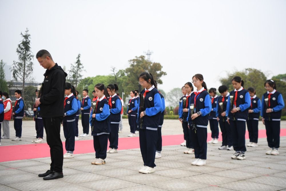 3月30日,長(zhǎng)沙市長(zhǎng)郡天心實(shí)驗(yàn)學(xué)校師生在湖南革命陵園烈士紀(jì)念碑前緬懷英烈。