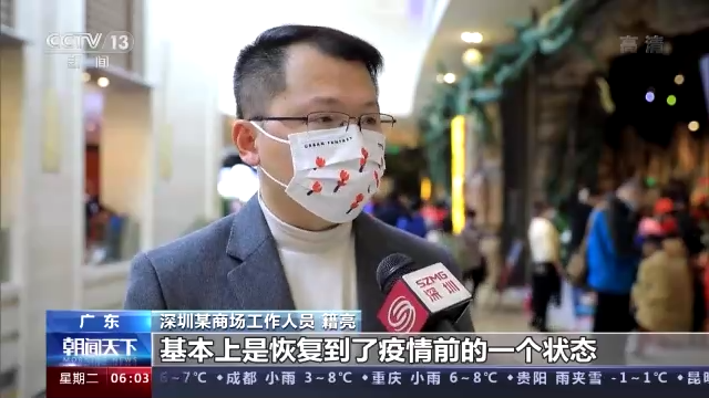 廣東深圳某商場(chǎng)工作人員 籍亮:每日(商場(chǎng))平均營(yíng)業(yè)額已經(jīng)接近500萬(wàn)的水平,基本上恢復(fù)到了疫情前的狀態(tài)。