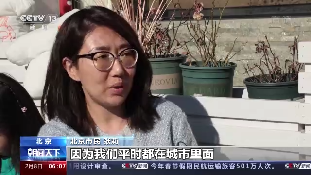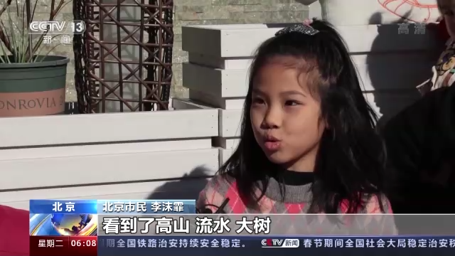 北京市民 李沫霏:看到了高山、流水、大樹,在家里只有爸爸、媽媽、爺爺、奶奶和妹妹陪我過(guò)年,在這有大家一起過(guò)年了,人多了,更有那種開心的感覺(jué)。