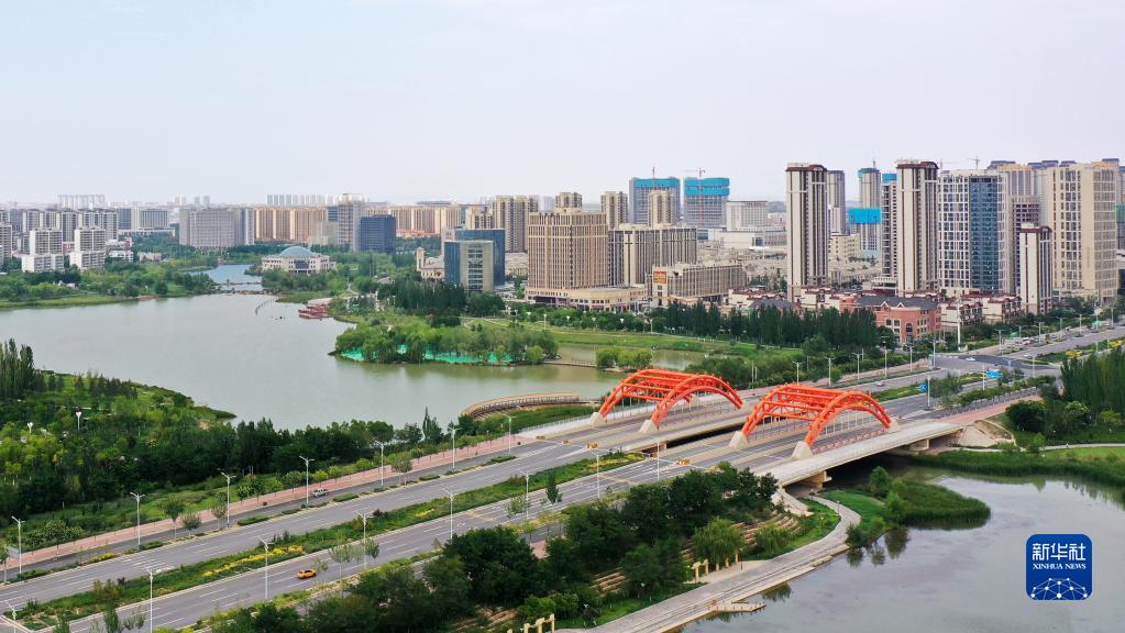 這是我國(guó)西北地區(qū)首個(gè)國(guó)家級(jí)新區(qū)蘭州新區(qū)城市面貌(2022年8月10日攝,無人機(jī)照片)。新華社記者 陳斌 攝
