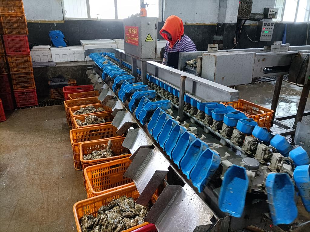 初步清理后的生蠔被送進(jìn)公司在島上的廠房里,經(jīng)過自動(dòng)化的清洗、按重量分揀等程序,保溫打包后發(fā)往全國各地。