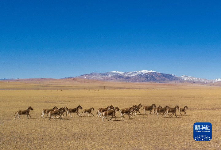 羌塘國(guó)家級(jí)自然保護(hù)區(qū)內(nèi)的藏野驢。新華社記者 孫非 攝