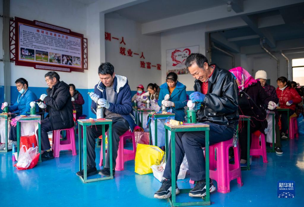 3月4日,脫貧群眾在云南省曲靖市會澤縣城搬遷安置點一棒球車間縫制棒球。新華社記者 陳欣波 攝