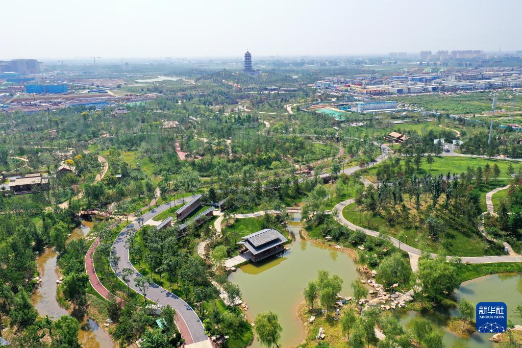 這是雄安新區(qū)悅?cè)莨珗@北苑內(nèi)的景色(2021年9月1日攝,無人機(jī)照片)。新華社記者 牟宇 攝