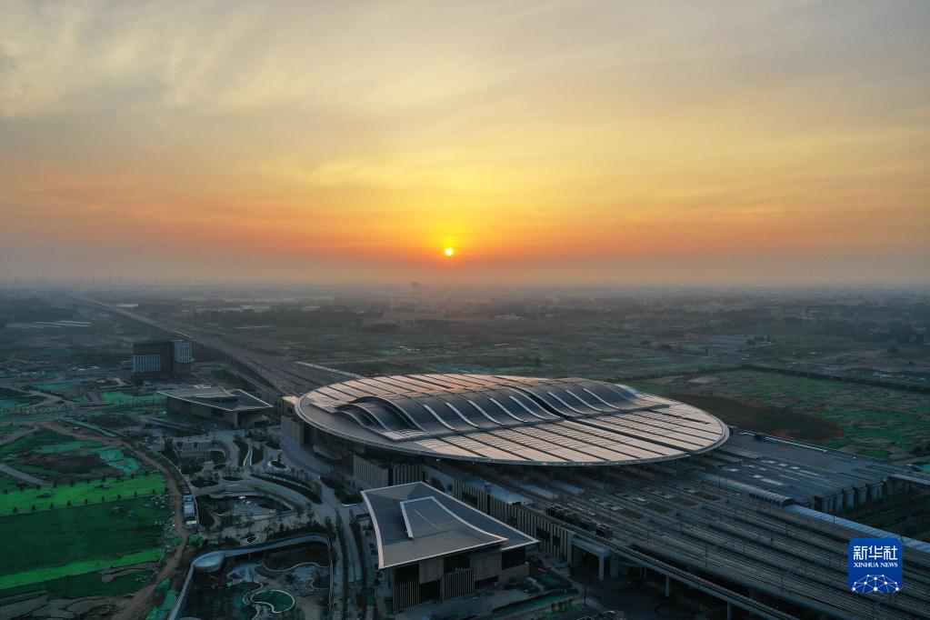 這是京雄城際鐵路雄安站(2021年7月1日攝,無人機(jī)照片)。 新華社記者 牟宇 攝