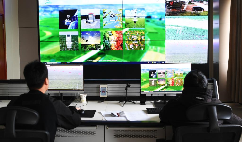 3月22日,工作人員在商水縣高標(biāo)準(zhǔn)農(nóng)田示范區(qū)農(nóng)業(yè)物聯(lián)網(wǎng)控制中心工作。新華社記者 張浩然 攝