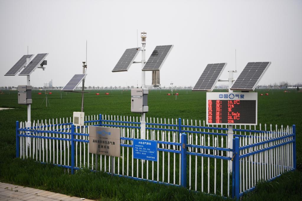 3月22日,商水縣高標(biāo)準(zhǔn)農(nóng)田示范區(qū)內(nèi)的田間氣象站。新華社記者 張浩然 攝