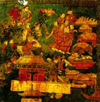 描繪清帝對五世達(dá)賴及其隨行人員的貢賞圖(布達(dá)拉宮壁畫)