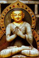 薩迦班智達貢噶堅贊(1182—1151)是薩迦五祖中的第四祖,幼年即跟從伯父扎巴堅贊受戒出家,后又以1204年進藏的印度高僧喀且班欽釋迦室利為師受比丘戒。他精通大小五明,著述很多,曾云游烏思藏各地,有許多弟子,對政教事務(wù)和講經(jīng)傳法有豐富經(jīng)驗,是當時西藏佛教人士中最著名的大師之一,他主持的薩迦派是當時后藏地區(qū)實力最強的一派。在接到闊端的邀請信后,他慨然應(yīng)允前往涼州。在動身之前,他對薩迦派的事務(wù)做了仔細安排??磥硭_迦班智達對他去涼州后可能發(fā)生的各種情況都作了充分考慮,為了將薩迦派教主的職務(wù)按習(xí)慣順利地傳給其侄子八思巴,所以他決定把人思巴兄弟帶在身邊,同去涼州。薩迦班智達一路上會晤了各地僧俗領(lǐng)袖,解釋他去蒙古是為佛教及眾生的利益,特別是他因扎巴迥乃的請求到止貢寺會見,接受扎巴迥乃贈給的財物,這表明薩迦班智達到?jīng)鲋莶⒉粌H是他個人或薩迦派一派與蒙古汗國之間的關(guān)系,他是代表包括京俄仁波且扎巴迥乃在內(nèi) 的西藏地方的主要僧俗首領(lǐng),前去涼州與闊端會談和建立關(guān)系的。