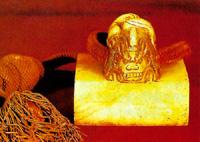 八思巴文鐵質(zhì)金字牌(此為元帝賜給薩迦派首領(lǐng)的識別證件,牌上文字內(nèi)容是:“靠長生天的氣力,皇帝圣旨,誰若不從,即要問罪”)