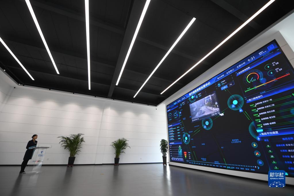 10月16日,河北雄安新區(qū)中國電信智慧城市產業(yè)園工作人員展示數(shù)字道路運營系統(tǒng)。新華社記者 朱旭東 攝