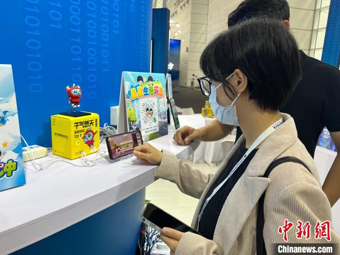 在廣東展館,觀眾體驗互動游戲。 王君妍 攝