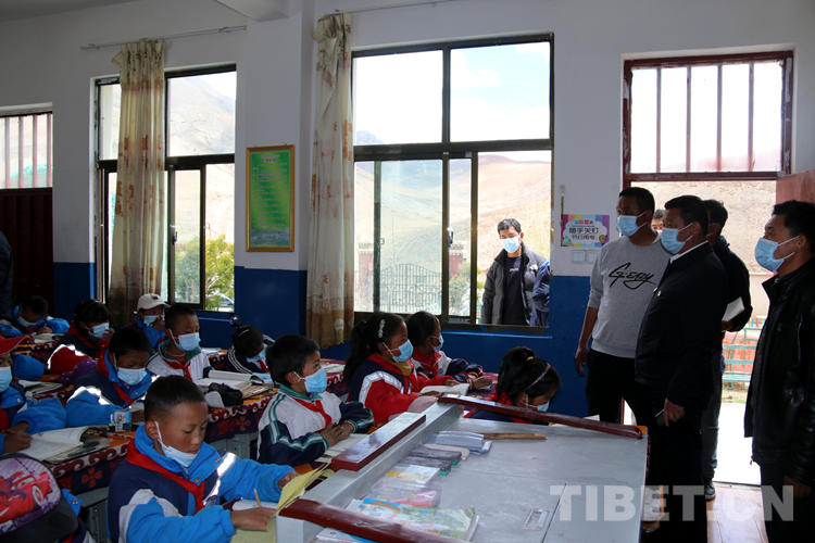 圖為次仁頓珠在白朗縣轄區(qū)某小學(xué)視察教學(xué)工作、慰問學(xué)校師生