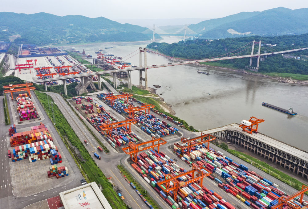如今的果園港已開拓出全新的物流格局——依托長江黃金水道、西部陸海新通道、中歐班列(成渝)等國際物流大通道,從傳統(tǒng)內(nèi)河港口升級為長江上游聯(lián)通全球的“中轉(zhuǎn)站”,貨物可通達(dá)全球100余個(gè)國家和地區(qū)的300余個(gè)港口。