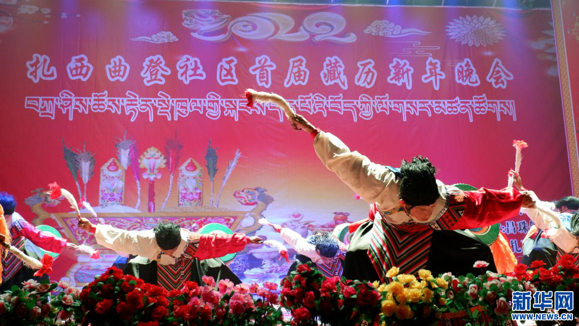 26日晚,西藏山南市乃東區(qū)扎西曲登社區(qū)首屆藏歷新年晚會在社區(qū)文化路禮堂舉行。