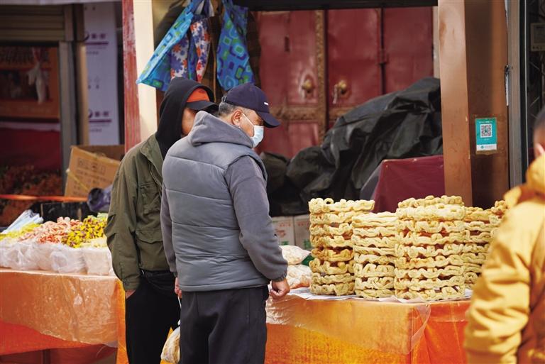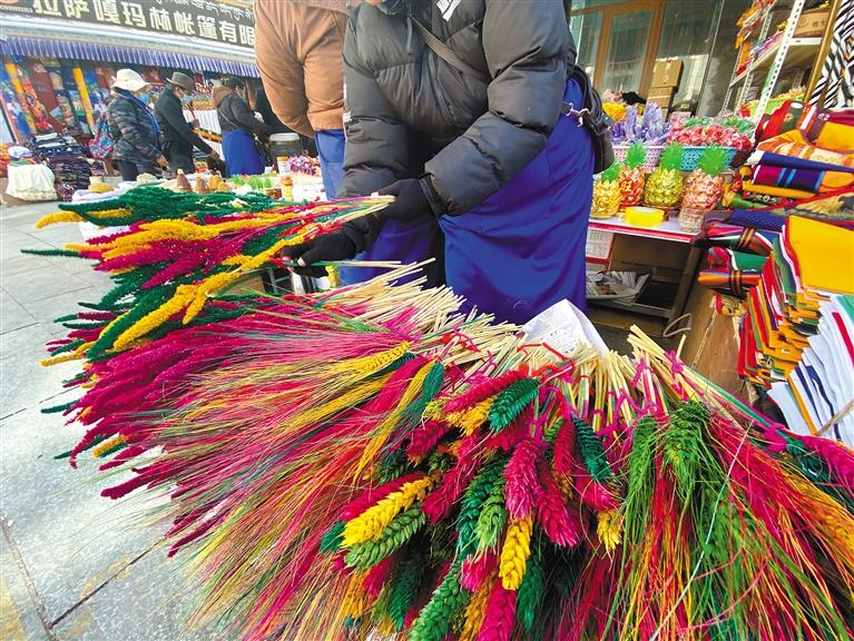 扎西加措回憶,上世紀(jì)80年代可沒這么豐富的年貨。飯桌上就是“老三樣”:蘿卜、土豆和“熟芽菜”,再加上風(fēng)干肉和幾個蘋果,就算是過年了。“現(xiàn)在生活太好了,想買什么年貨,只要去八廓商城和沖賽康商場都可以買到,藏歷新年喜樂祥和的氛圍越來越濃了?!闭f起現(xiàn)在的藏歷新年,老人臉上堆滿了笑意。