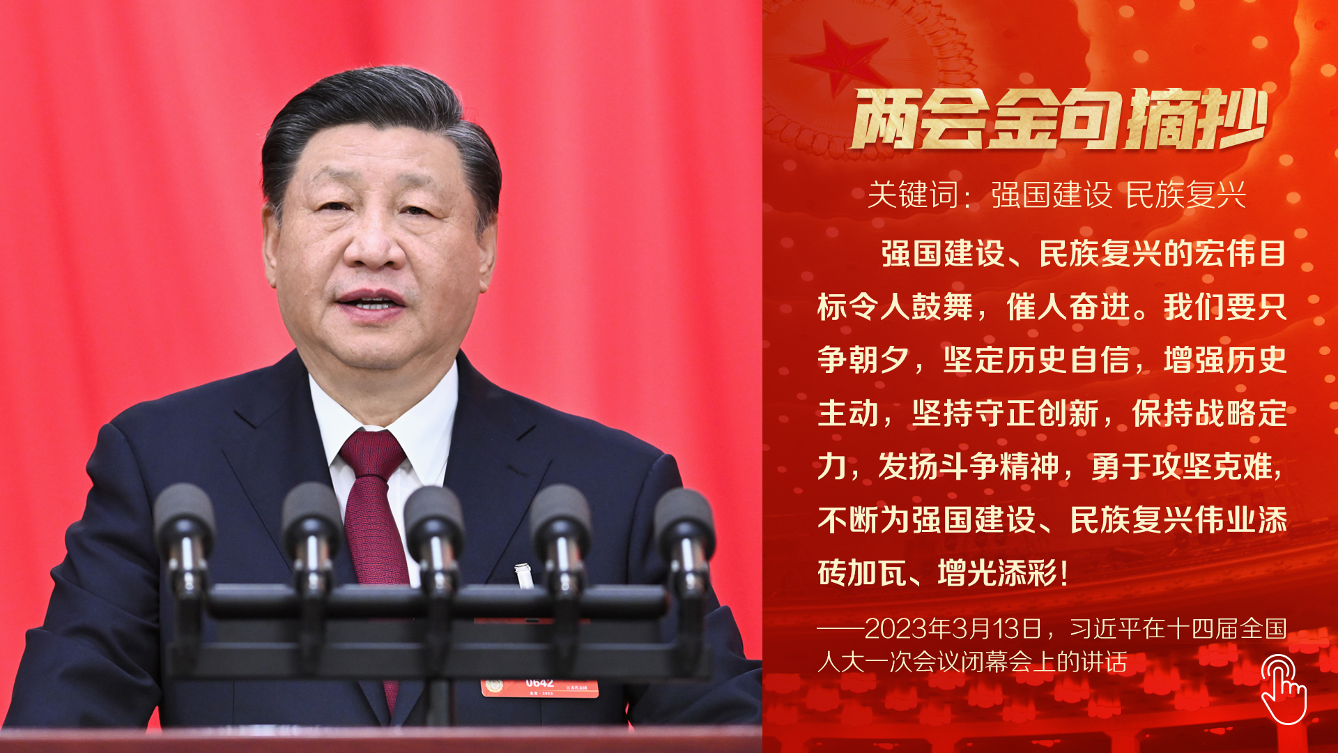 “在新征程上作出無負時代、無負歷史、無負人民的業(yè)績,為推進強國建設(shè)、民族復興作出我們這一代人的應(yīng)有貢獻!”2023年全國兩會閉幕之際,習近平總書記發(fā)出的號召,澎湃人心,催人奮進。