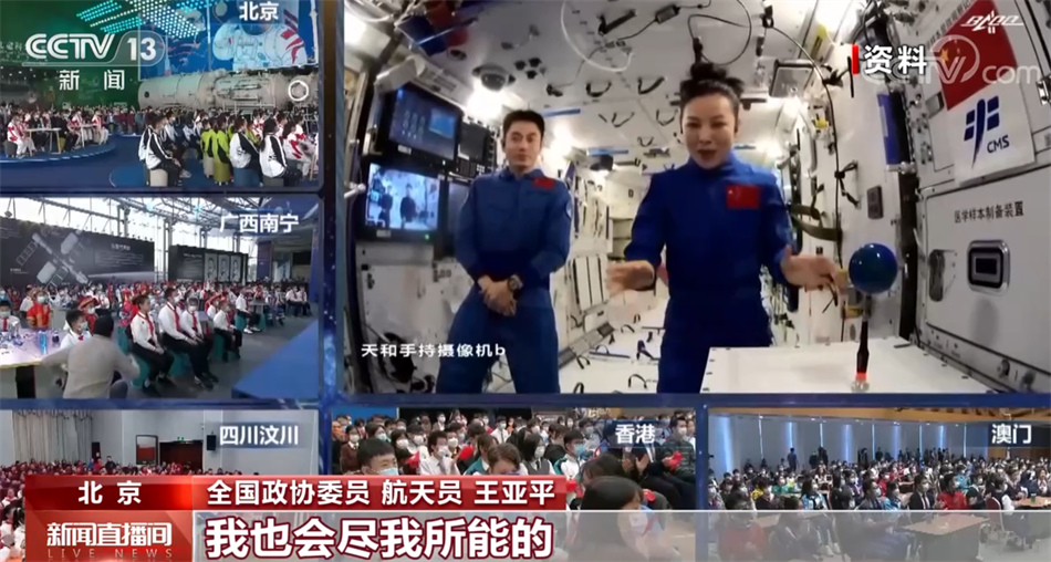 全國(guó)政協(xié)委員 航天員 王亞平:那種親手為他們播種夢(mèng)想、開啟追夢(mèng)旅程的感覺,真的是太棒了。太空授課讓他們感受到了航天、感受到太空的這種神奇,讓他們產(chǎn)生了一些向往。所以他們畢業(yè)無論是在面臨學(xué)業(yè)和職業(yè)選擇的時(shí)候,會(huì)選擇航天,這也是讓我感到無比的幸福和欣喜。在這個(gè)過程當(dāng)中,其實(shí)也是激勵(lì)著我不斷投身航天科普教育。