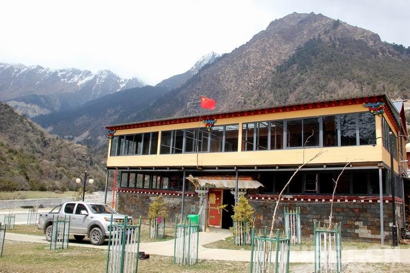 圖為次卓瑪在玉麥村的新家,五星紅旗在漂亮的二層藏式小樓屋頂迎風飄揚,門前停著新買的皮卡車 攝影:劉莉