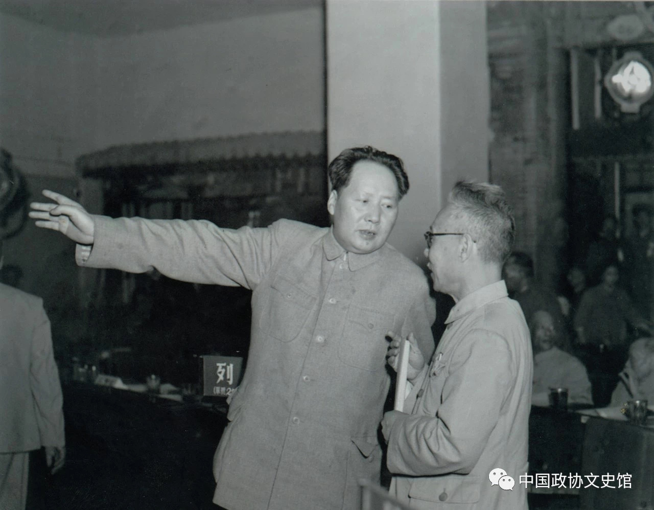 1950年6月23日,毛主席在大會(huì)休息時(shí)與馬敘倫交談。