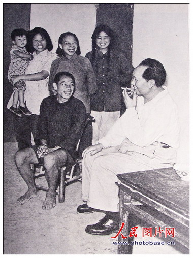 1959年,毛澤東在故鄉(xiāng)韶山同貧農(nóng)社員親切談話。