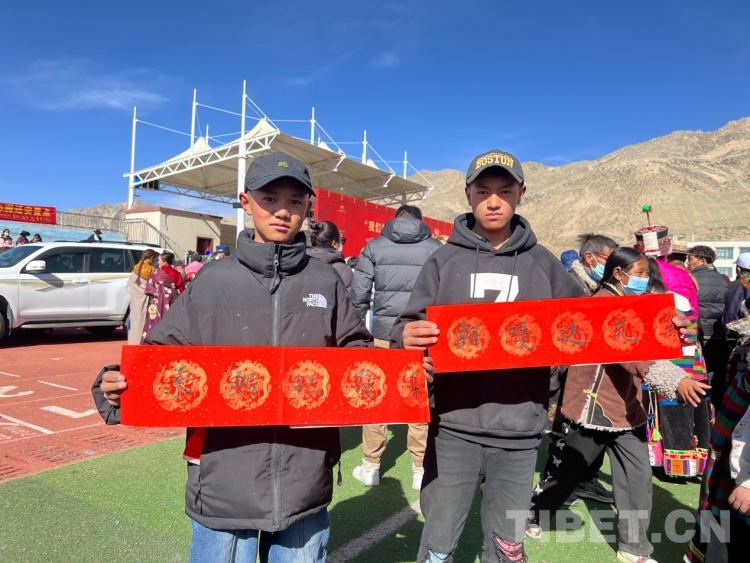 圖為群眾拿到寫有“扎西德勒”字樣的書法作品 攝影:德吉卓瑪