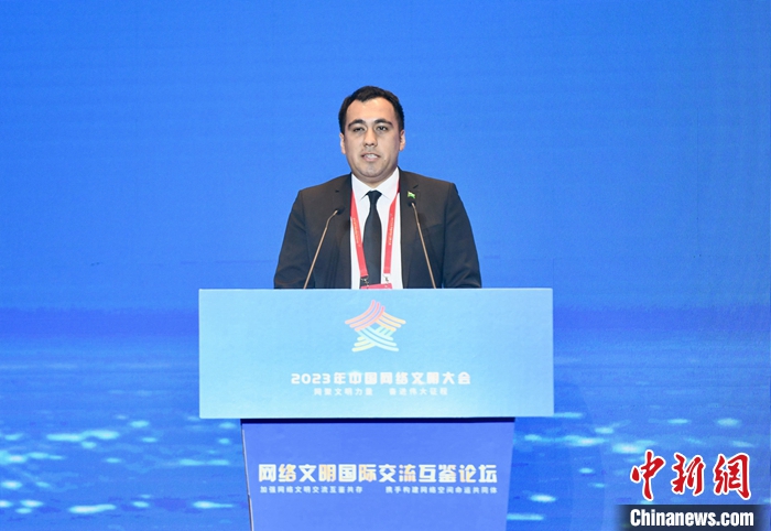 7月18日,2023年中國(guó)網(wǎng)絡(luò)文明大會(huì)網(wǎng)絡(luò)文明國(guó)際交流互鑒論壇在廈門舉辦。圖為中國(guó)石油大學(xué)(北京)土庫(kù)曼斯坦籍留學(xué)生若賀曼作主題演講。中新社記者 王東明 攝