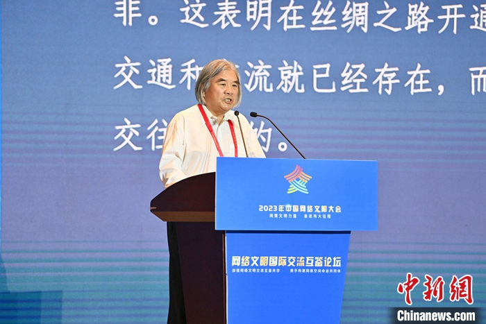 7月18日,2023年中國網(wǎng)絡(luò)文明大會(huì)網(wǎng)絡(luò)文明國際交流互鑒論壇在廈門舉辦。圖為絲綢之路考古合作研究中心首席科學(xué)家王建新作主題演講。中新社記者 王東明 攝