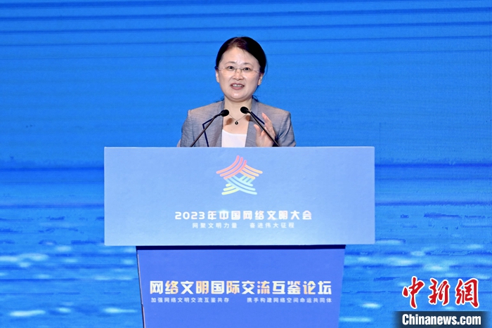 7月18日,2023年中國網(wǎng)絡(luò)文明大會(huì)網(wǎng)絡(luò)文明國際交流互鑒論壇在廈門舉辦。圖為江蘇省蘇州市委網(wǎng)信辦主任陳雪嶸作主題演講。中新社記者 王東明 攝