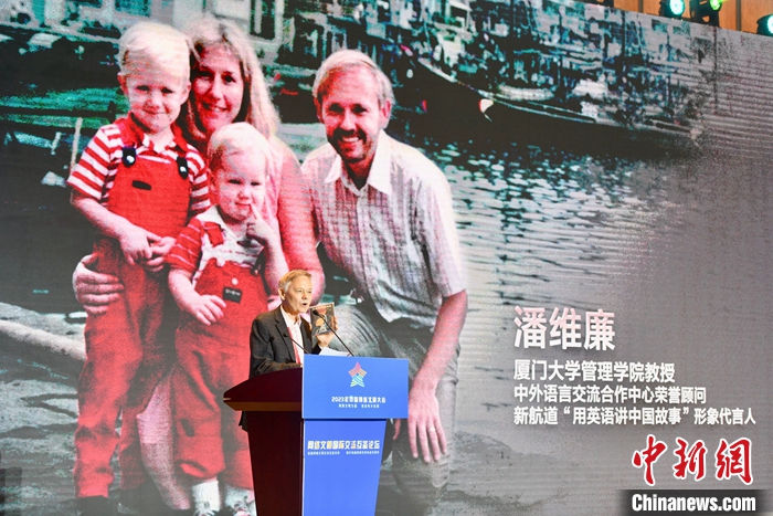 7月18日,2023年中國網(wǎng)絡(luò)文明大會(huì)網(wǎng)絡(luò)文明國際交流互鑒論壇在廈門舉辦。圖為廈門大學(xué)美籍教授潘維廉作主題演講。中新社記者 王東明 攝