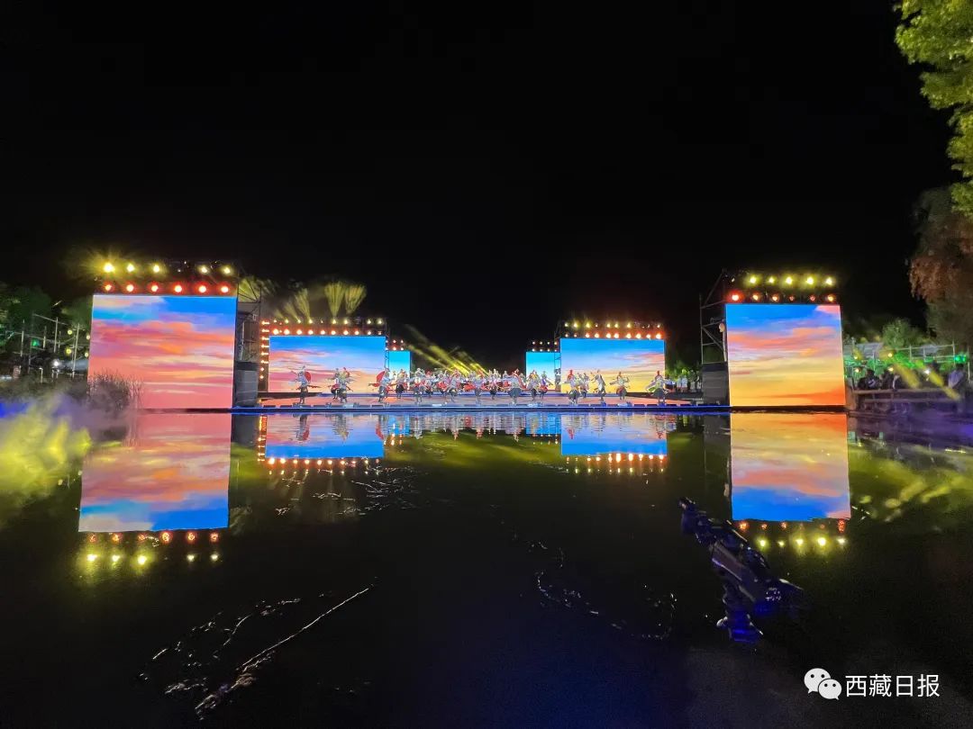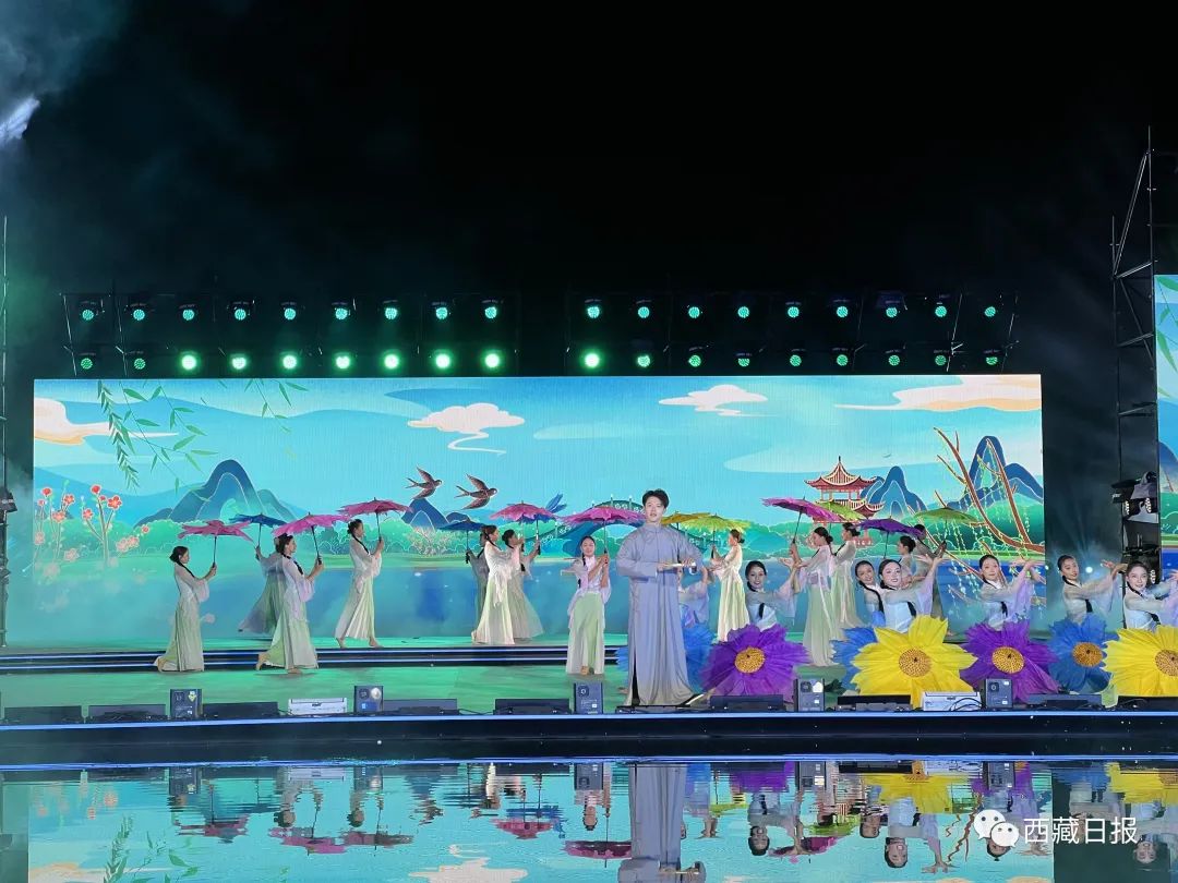 活動(dòng)在文藝演出《雪頓新韻》中拉開(kāi)序幕,絢麗的燈光、精彩的文藝演出,為觀眾帶來(lái)了一場(chǎng)精美的視覺(jué)盛宴。開(kāi)幕式由序篇、上篇、下篇、尾聲四個(gè)章節(jié)組成,整場(chǎng)文藝演出融合歌曲、舞蹈、藏戲、京劇、昆曲、街舞等元素,并以半實(shí)景的舞臺(tái)藝術(shù)形式上演《百年雪頓》等節(jié)目,在線上線下呈現(xiàn)一臺(tái)傳統(tǒng)與現(xiàn)代交相輝映、傳承與創(chuàng)新和諧相融、歷史與未來(lái)一脈相承的文藝盛宴。