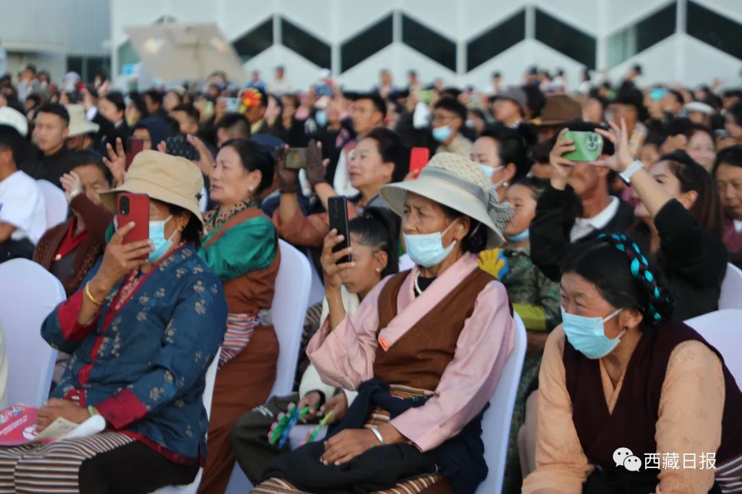 2023年拉薩雪頓節(jié)開(kāi)幕式上,市民用手機(jī)記錄精彩節(jié)目。記者 格桑倫珠 攝